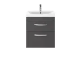 Nuie Athena 500mm Gloss Grey Wall Hung 2 Drawer Vanity With 1 Tap Hole Basin