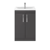 Nuie Athena 600mm Floor Standing 2 Door Vanity Unit With Mid-Edge 1 Tap Hole Basin
