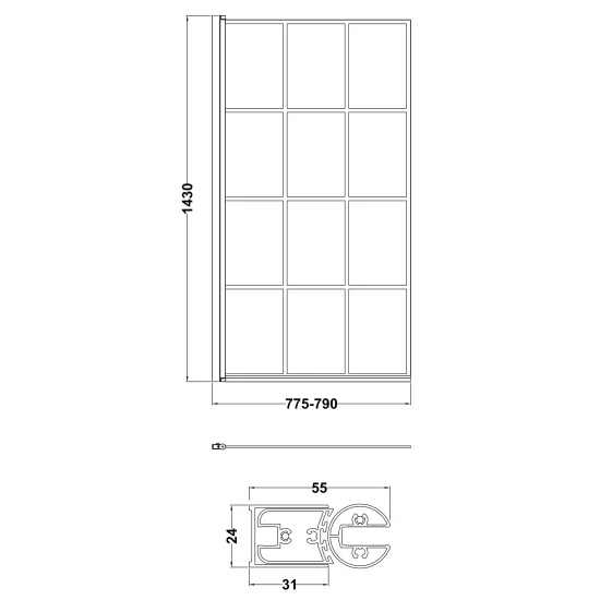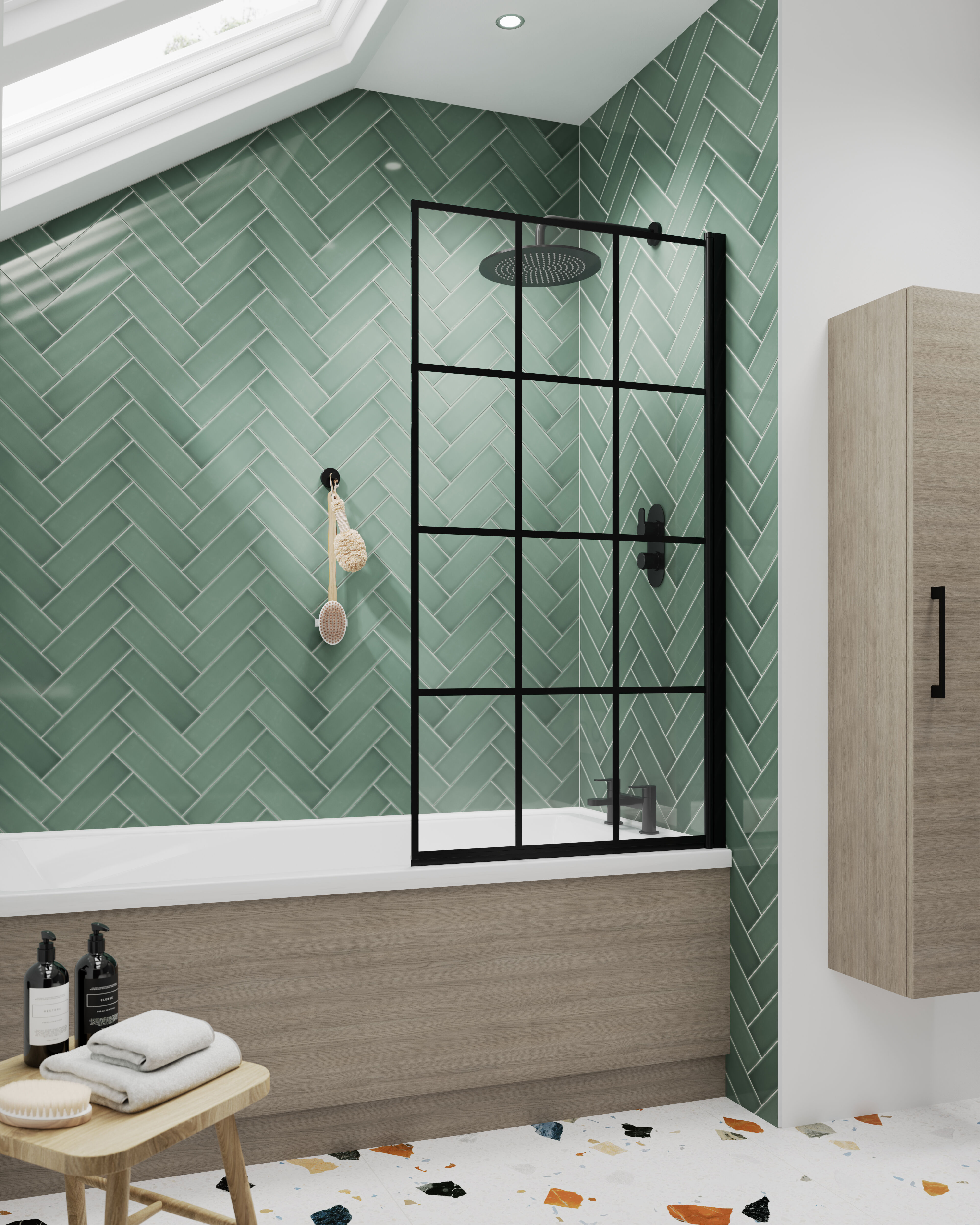 Expertly crafted by Synergy, the square black framed bath screen embodies modern sophistication and exceptional craftsmanship.
