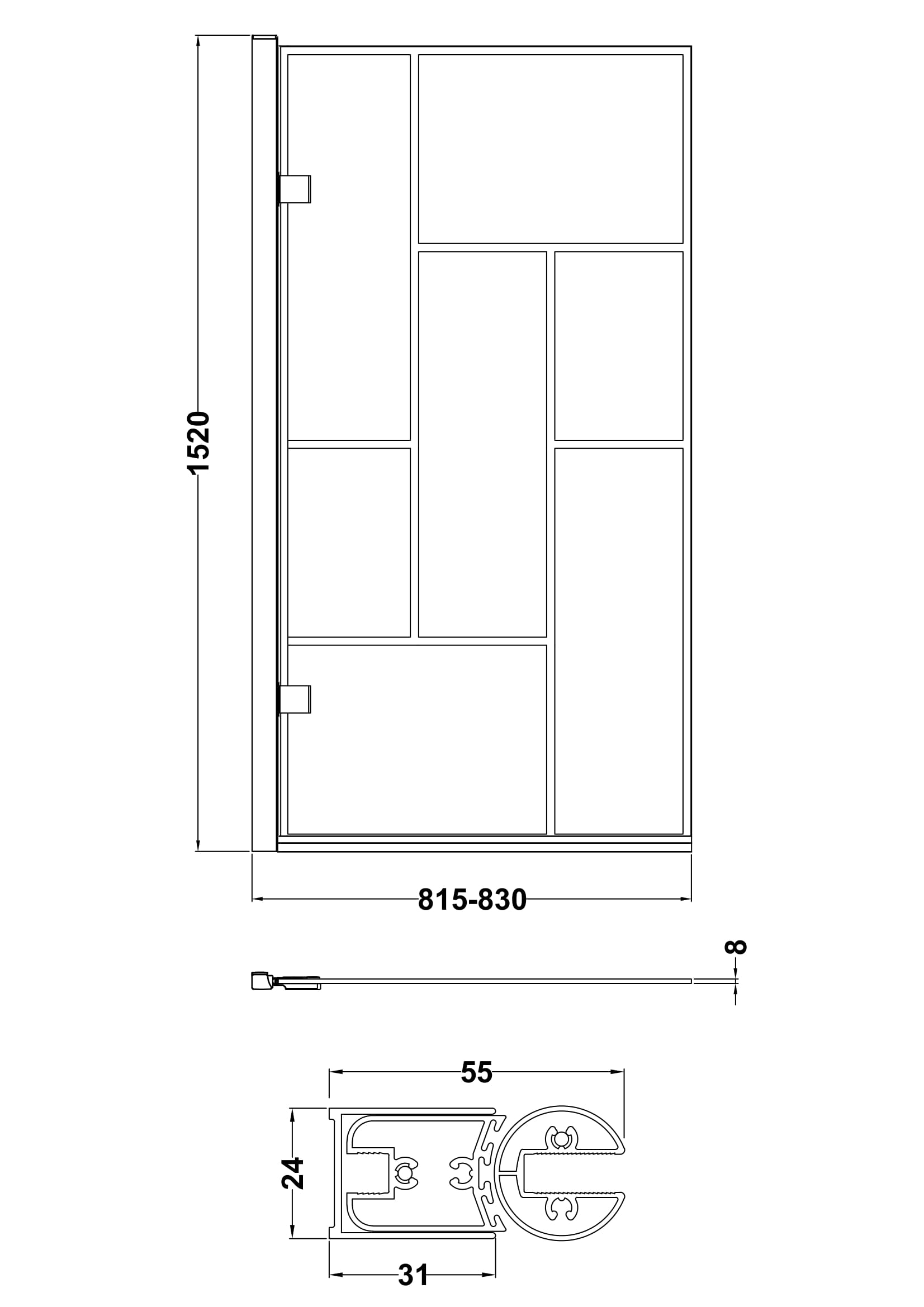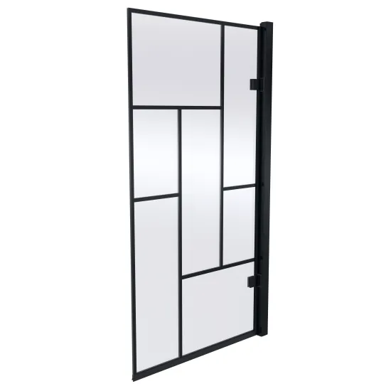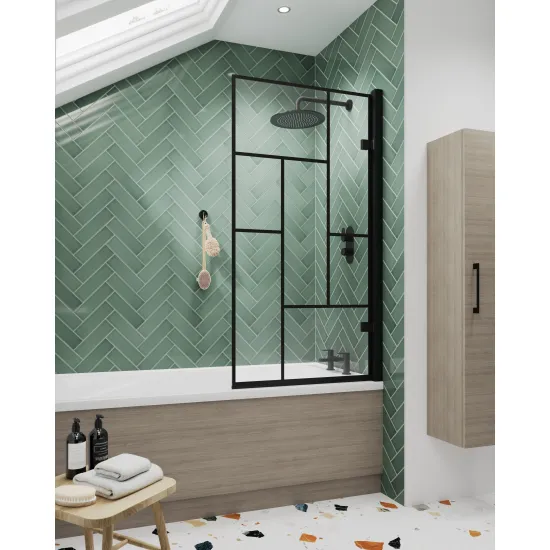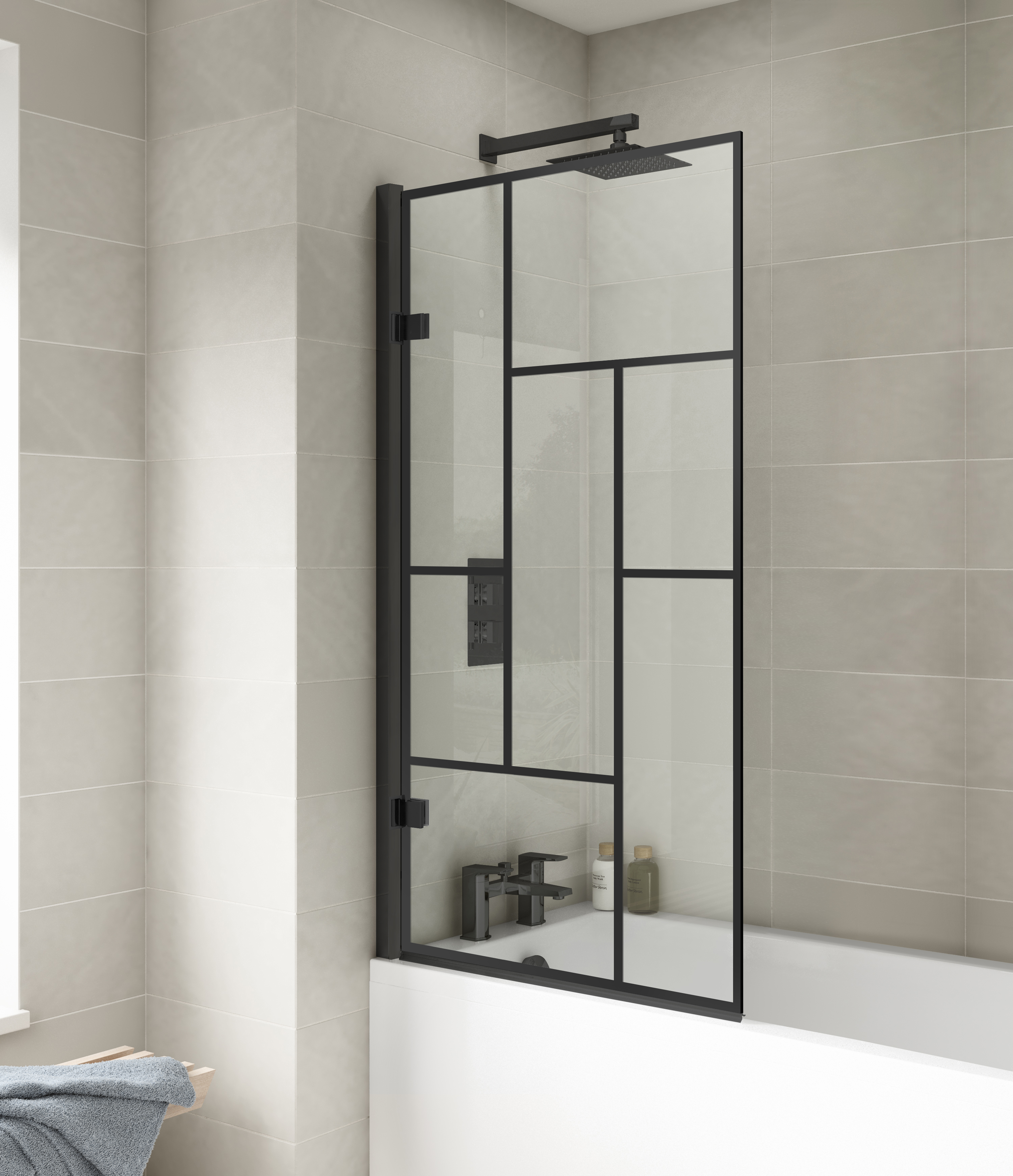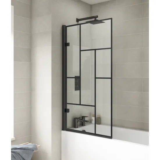 Synergy Vodas Square Block Hinged Bath Screen - 8mm - Matt Black