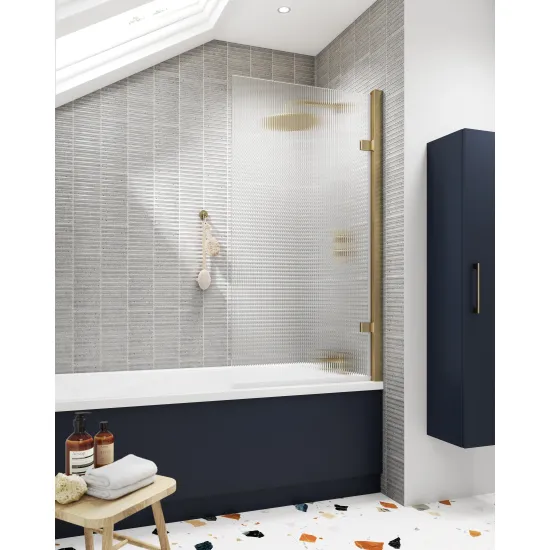 Synergy Vodas Fluted Square Hinged Bath Screen - Brushed Brass