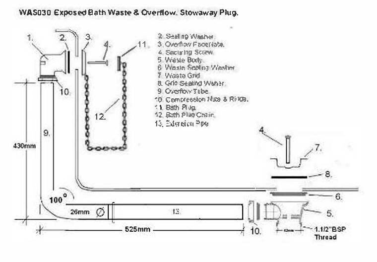 Bath Wastes Plug & Chain Exposed Ext Bath Waste