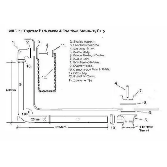 Bath Wastes Plug & Chain Exposed Ext Bath Waste