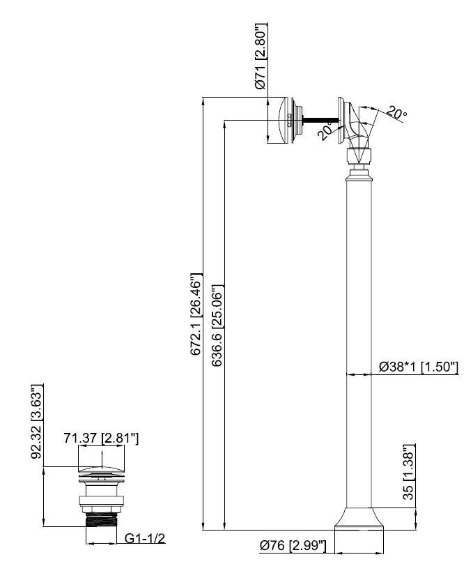 BC Sanitan Push Down Freestanding Bath Waste - Brushed Gold