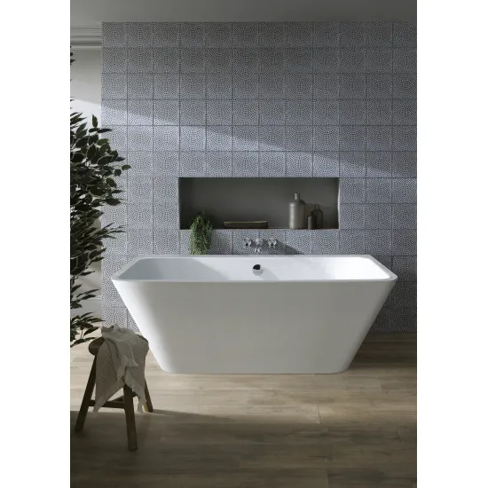 BC Designs Ancora Square Back To Wall Bath Waste Included - 1700mm x 590mm - White