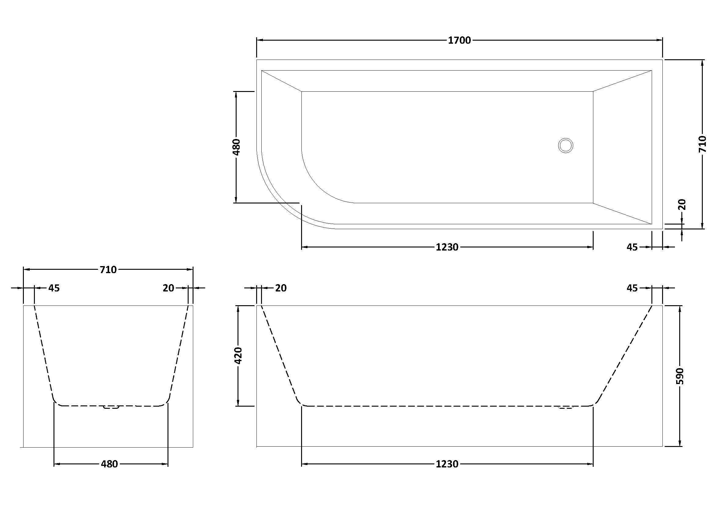 Nuie Choice Chronicle 1700mm Right-Hand Corner Bath With Legs And Waste
