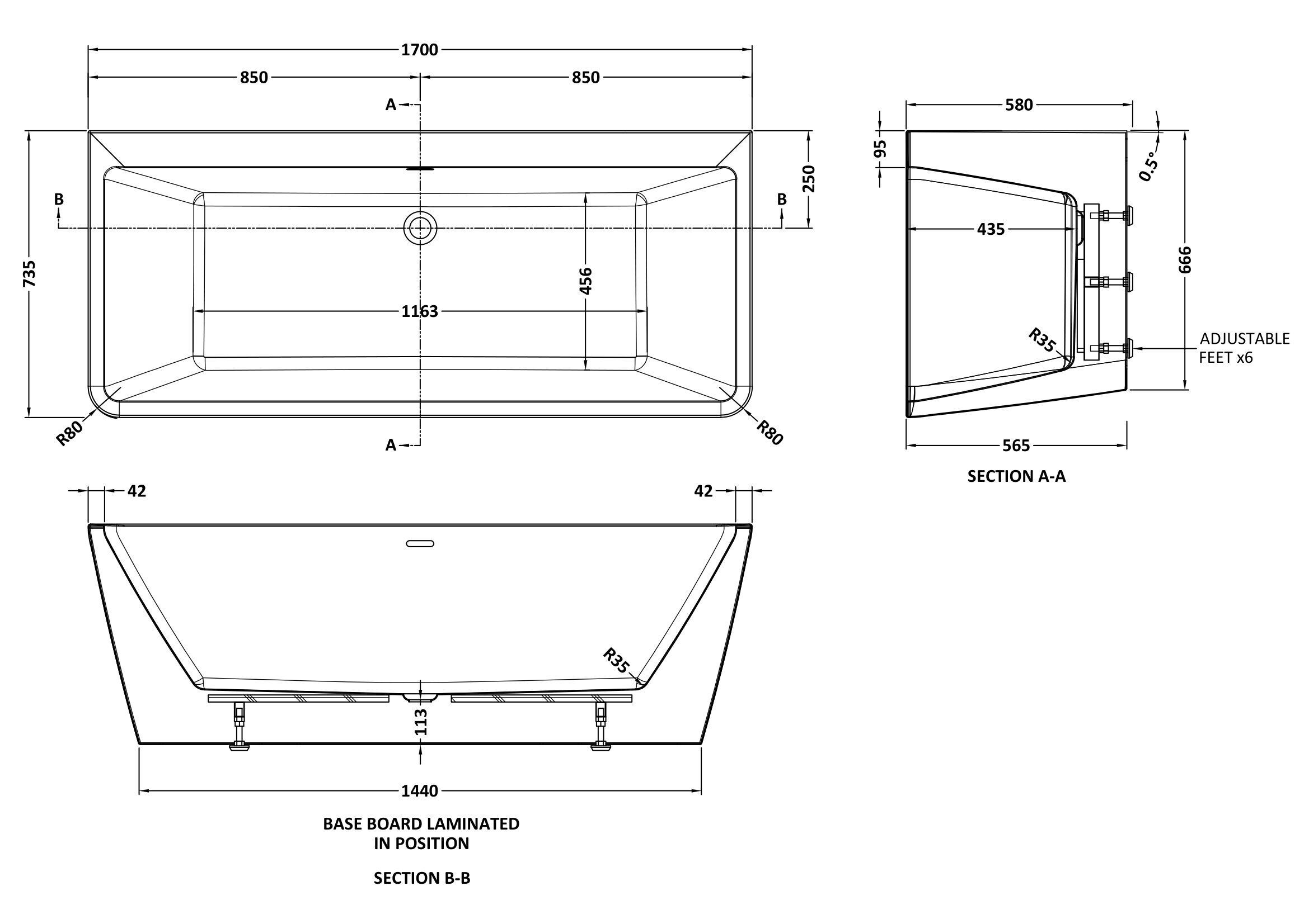 Nuie Choice 1700mm Boat Freestanding Bath With Legs