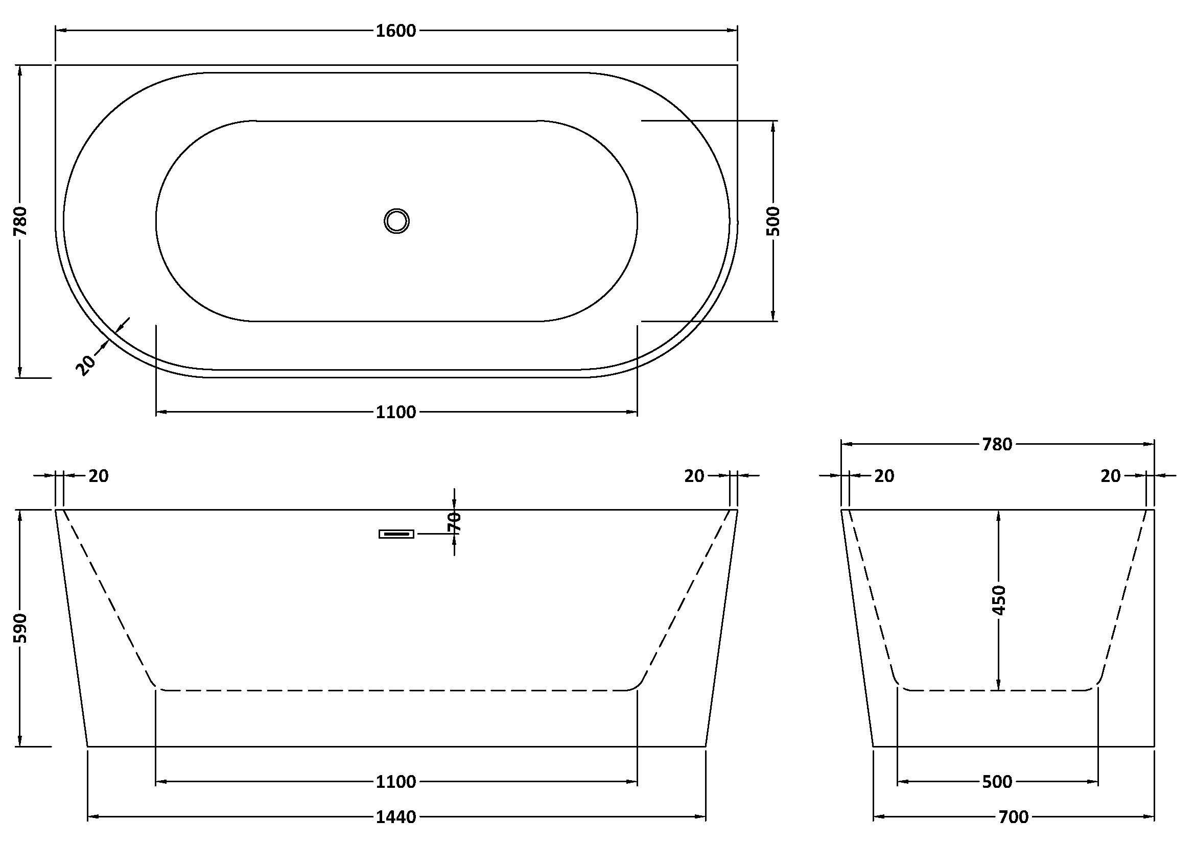 nuie choice Everlast 1600 x 780 x 590 BTW Freestanding Bath - White