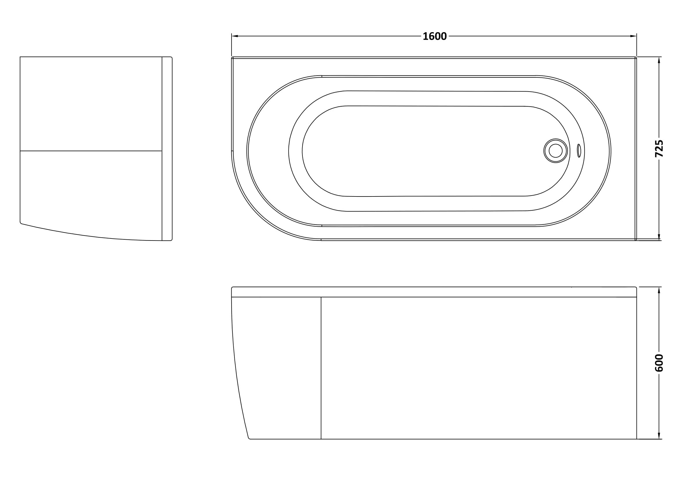 Nuie 1600mm Right-Hand Curved Bath With Legs And Panel