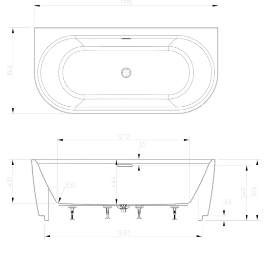 Synergy Balta 1800mm Modern Curved Back To Wall Bath