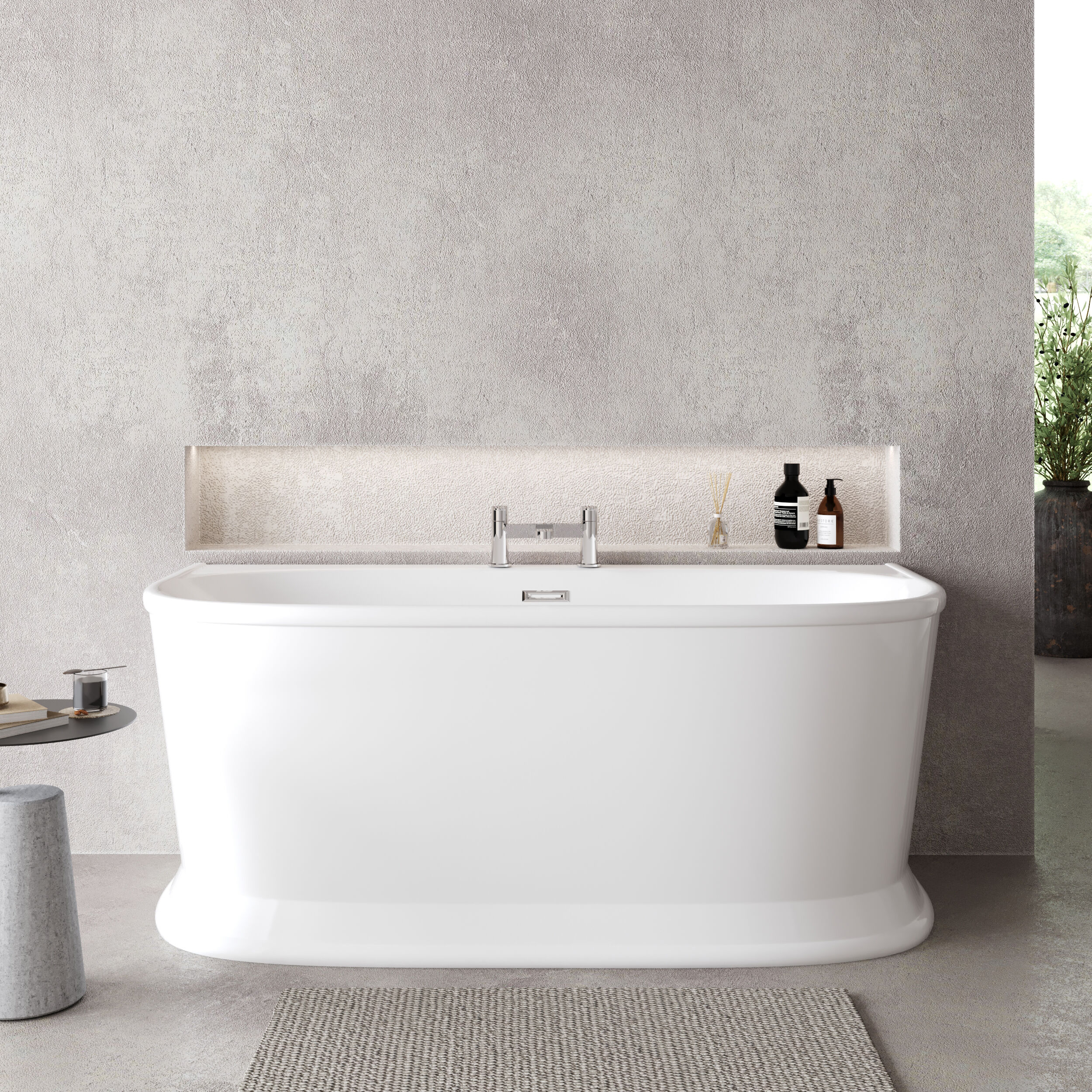 Luxurious back to wall bath manufactured to the highest quality from acrylic