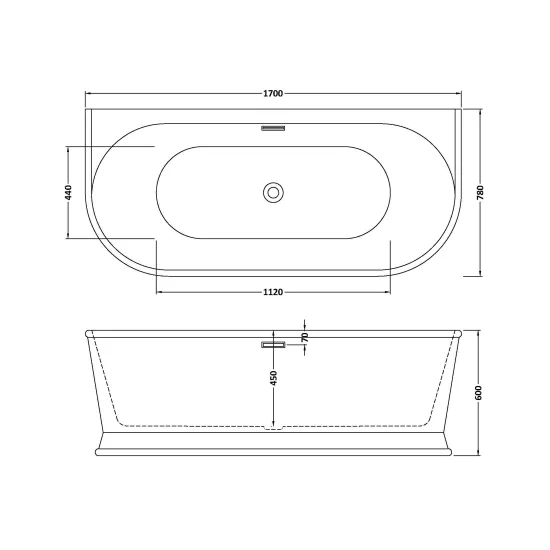 nuie choice Timora 1700 x 780 x 600 BTW Freestanding Bath - White