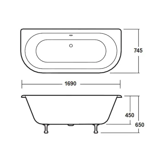 Back to Wall Double Ended Freestanding Bath - Pride Leg Set 1700mm