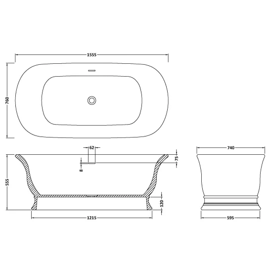 Bampton Oval Freestanding Bath with Plinth 1555mm x 740mm - No Waste