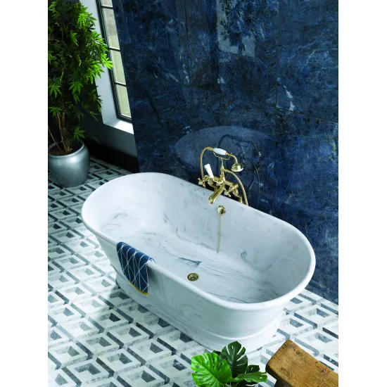 BC Designs Bampton Oval Freestanding Bath with Plinth 1555mm x 740mm - No Waste - Marble