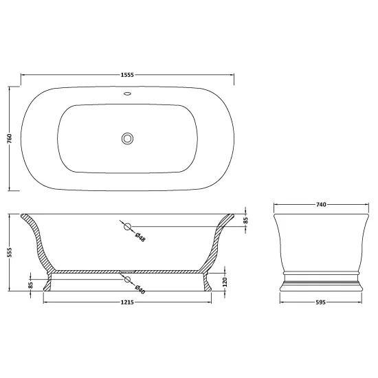 BC Designs Bampton Oval Freestanding Bath with Plinth 1555mm x 760mm - No Waste - Drifty White