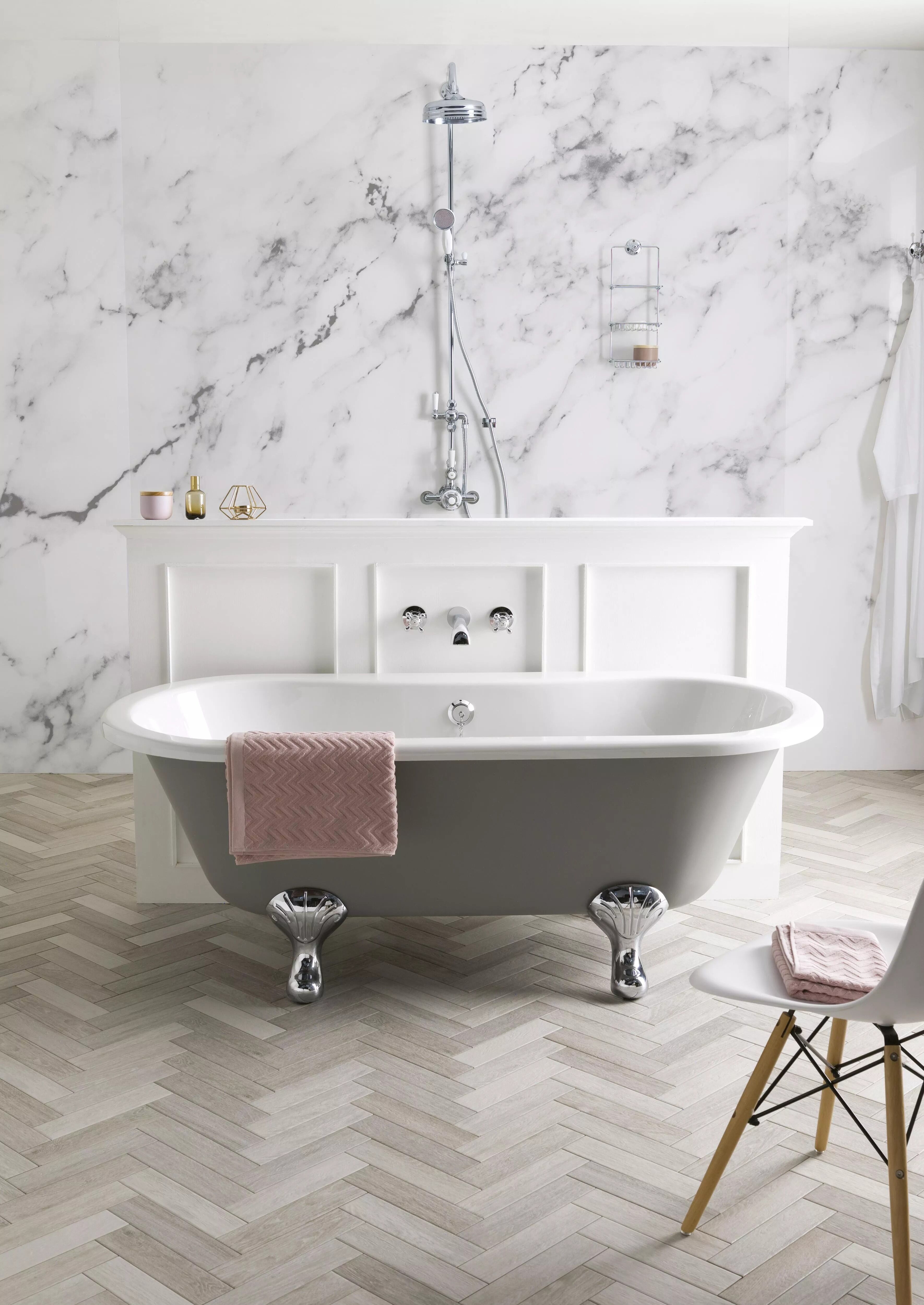 Contemporary gloss white finish. Selection of bath feet sold separately.