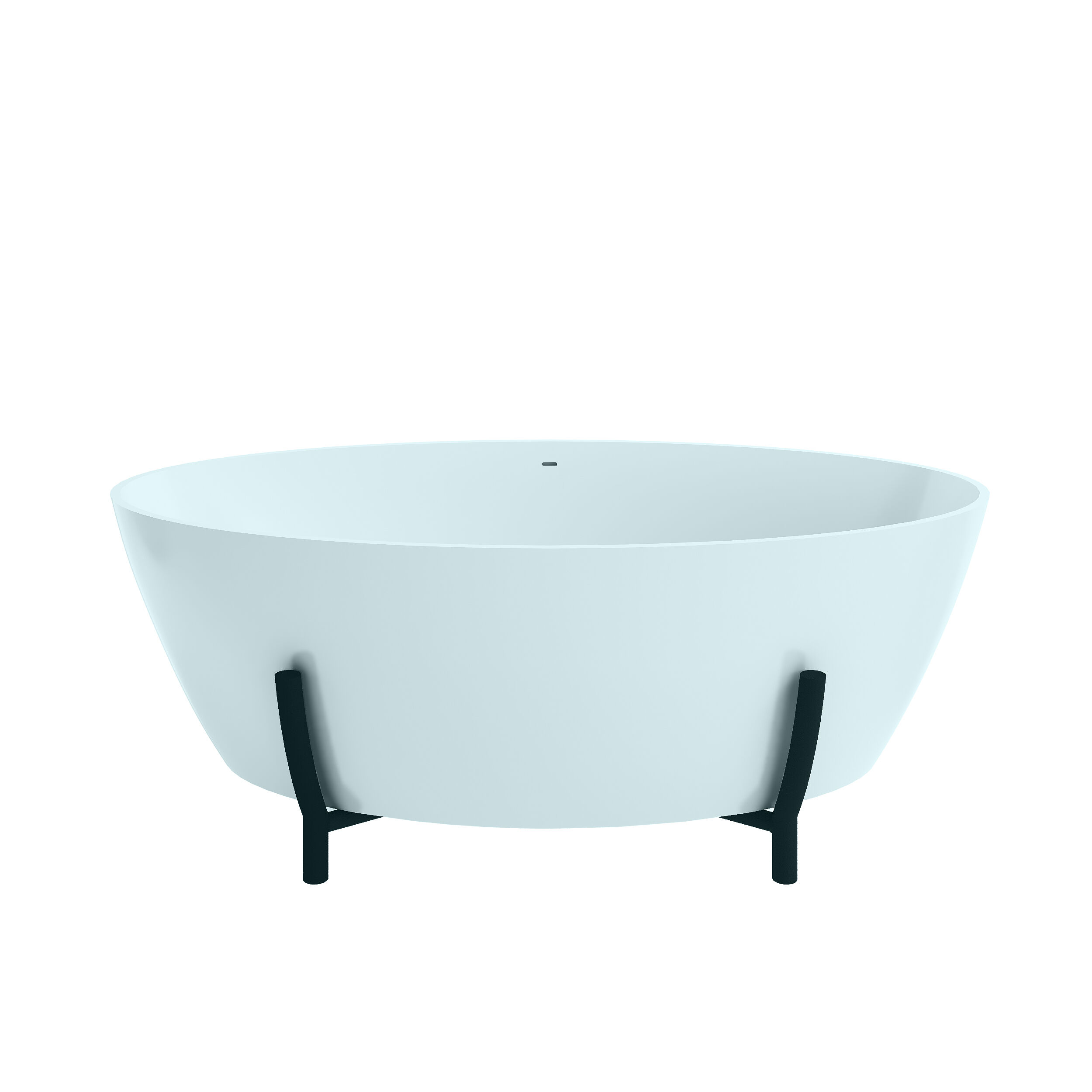 BC Designs Essex Round Freestanding Bath with Leg Stand 1510mm x 760mm - No Waste - Aqua Blue