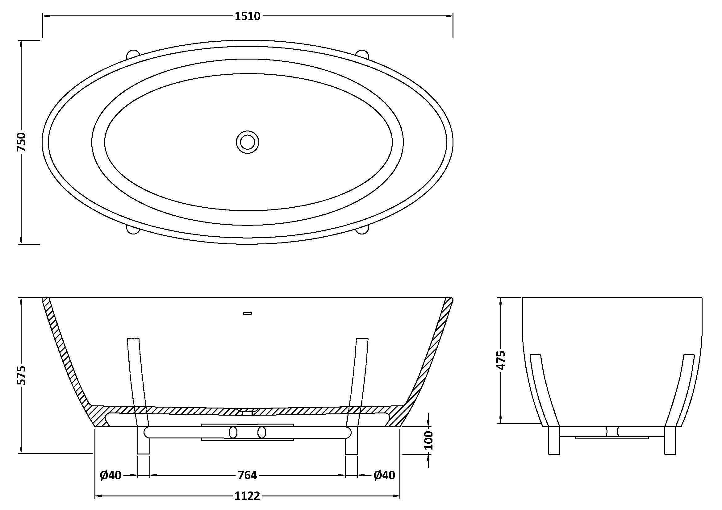 BC Designs Essex Round Freestanding Bath with Leg Stand 1510mm x 760mm - No Waste - Rose Bloom