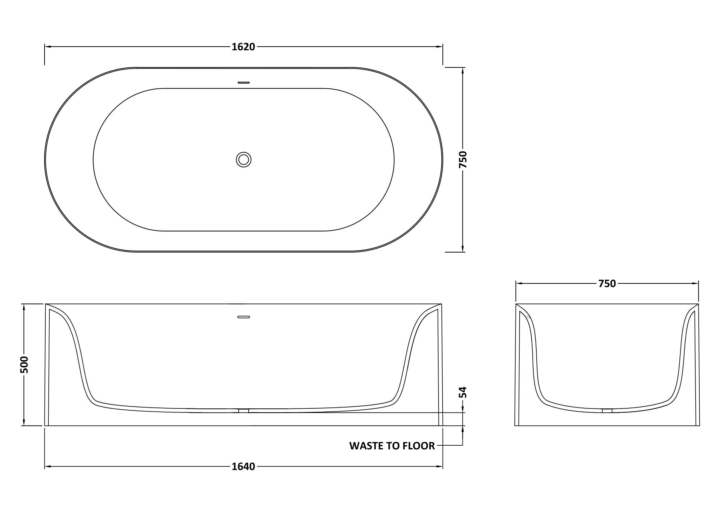 BC Designs Portman Bath Freestanding 1620 x 750 x 500 - Drifty White
