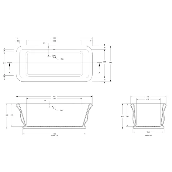 BC Designs Senator Curved Square Freestanding Bath 1800mm x 840mm - No Waste - Aqua Blue