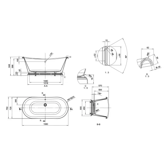 Boat Freestanding Double Ended Acrylic Boat Bath - 1580mm