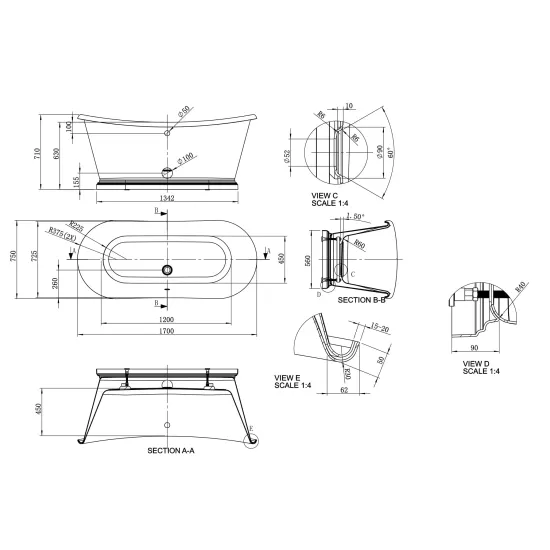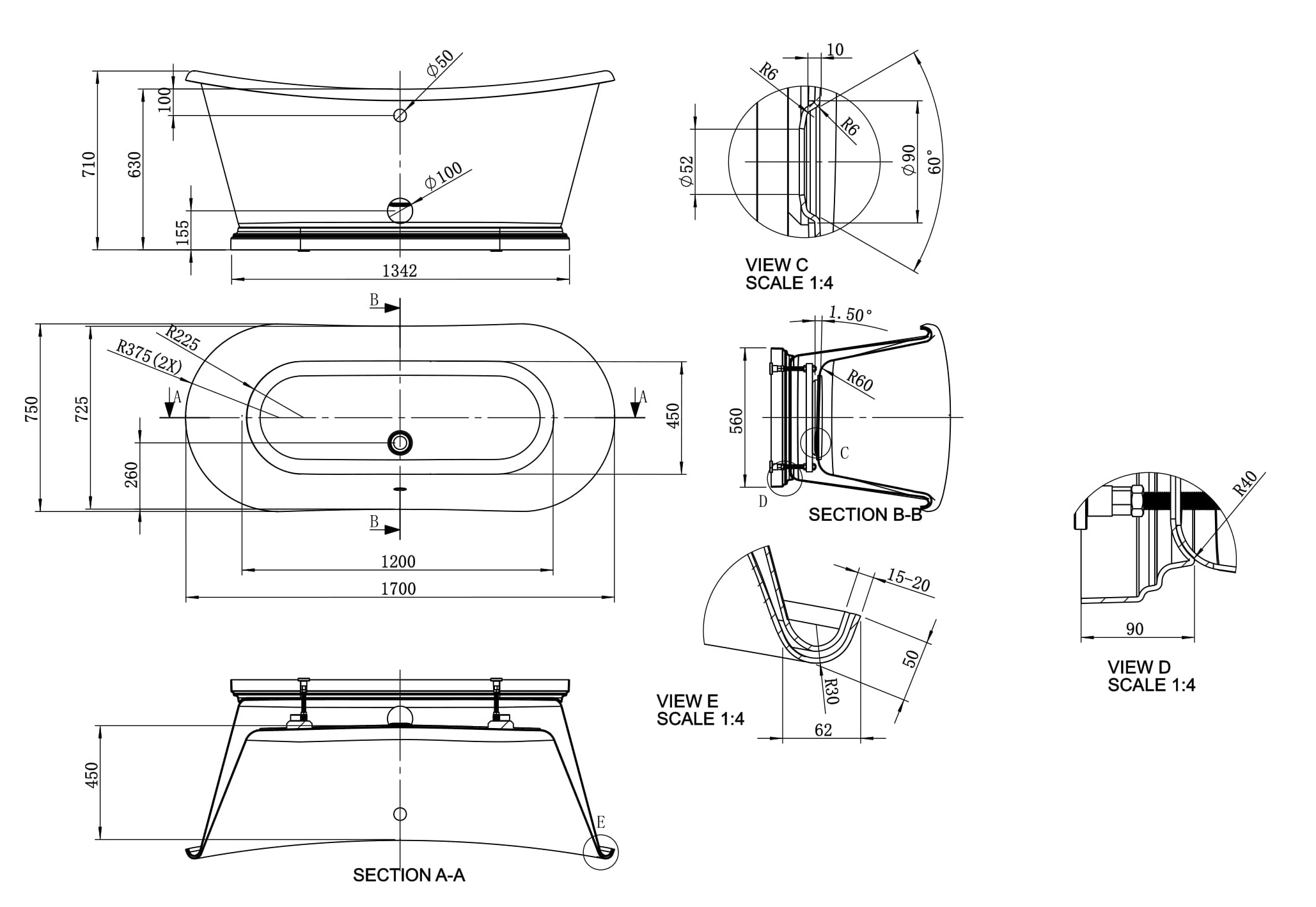 Boat Freestanding Double Ended Acrylic Boat Bath - 1700mm