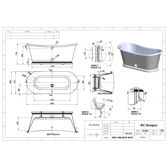 BC Designs 1800mm Traditional Boat Bath With Aluminium Plinth