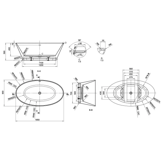 BC Designs Chalice Minor Freestanding Oval Bath 1650mm x 900mm - White