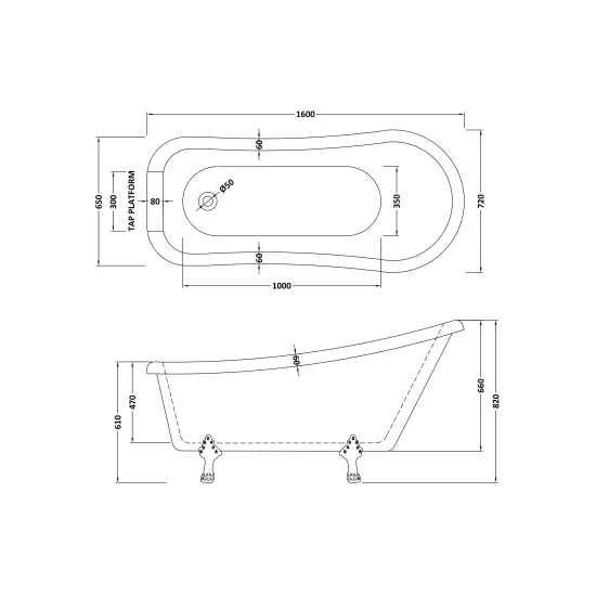 Nuie Choice Chronos Traditional 1600 x 720mm Slipper Bath With Leg Set