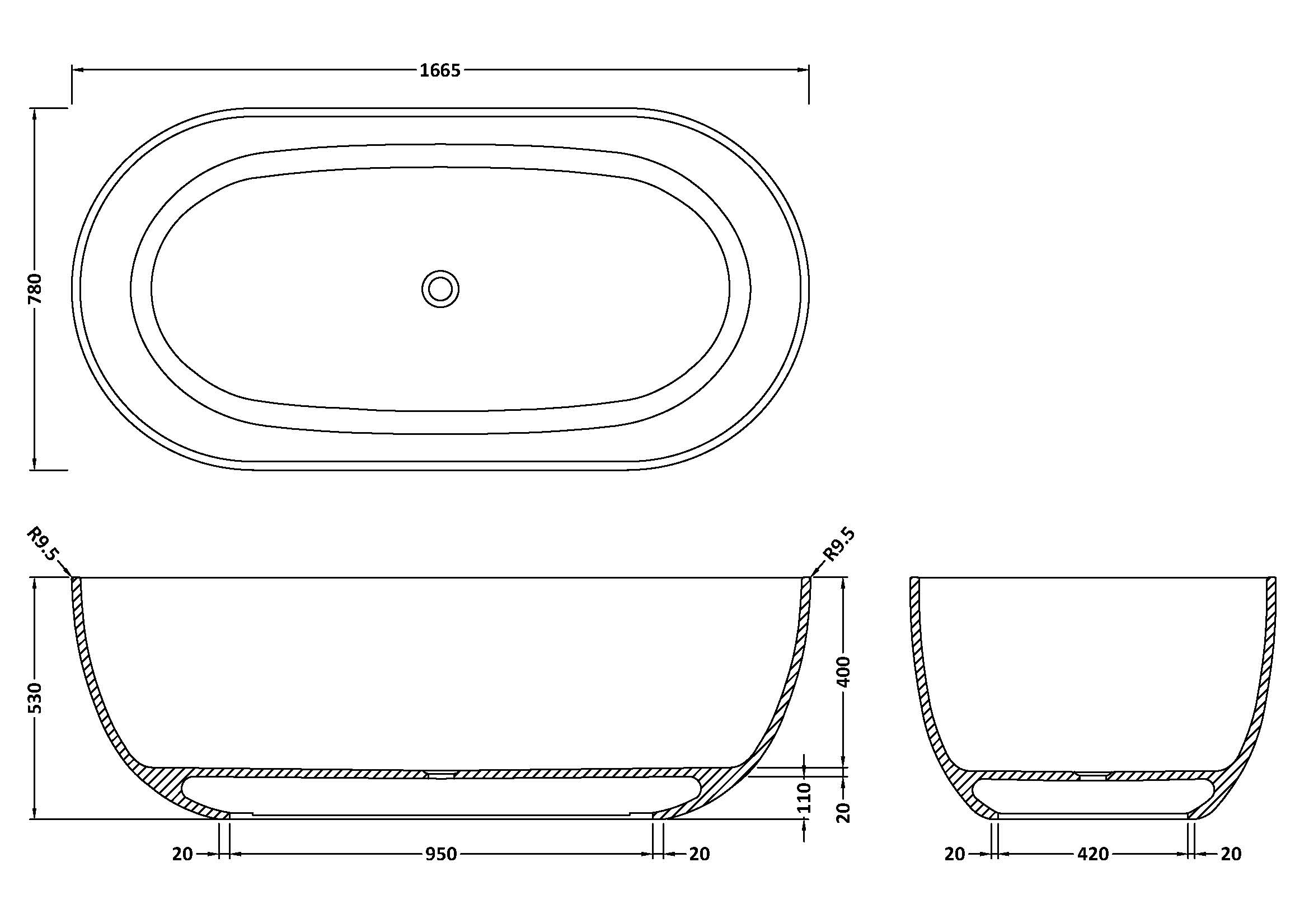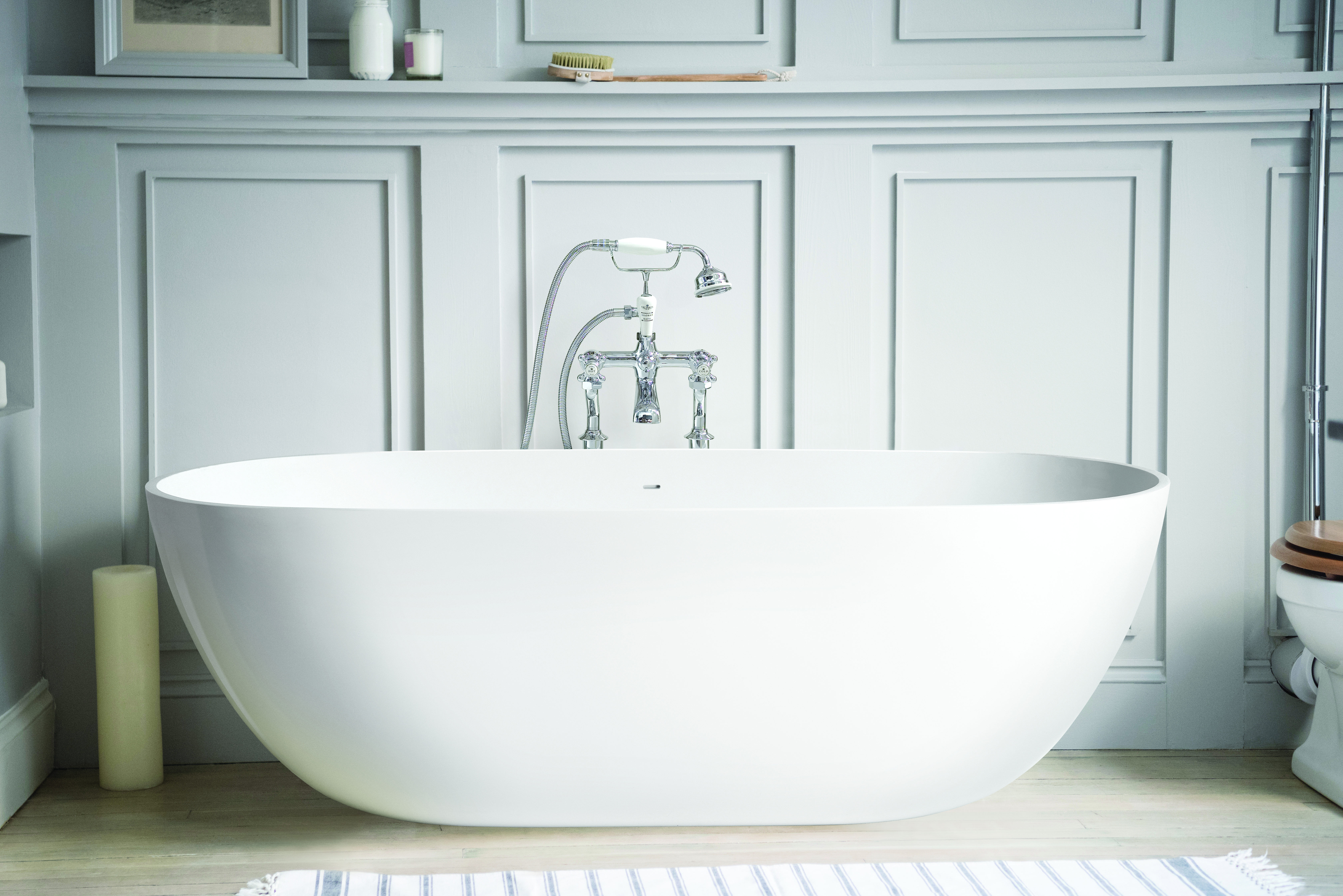 BC Designs Crea Minimalist Round Freestanding Bath with Overflow 1665mm x 780mm - No Waste - Polished White