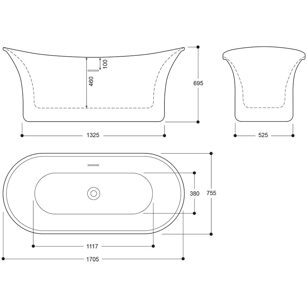 Elementa 1705mm Gold Freestanding Bath With Waste