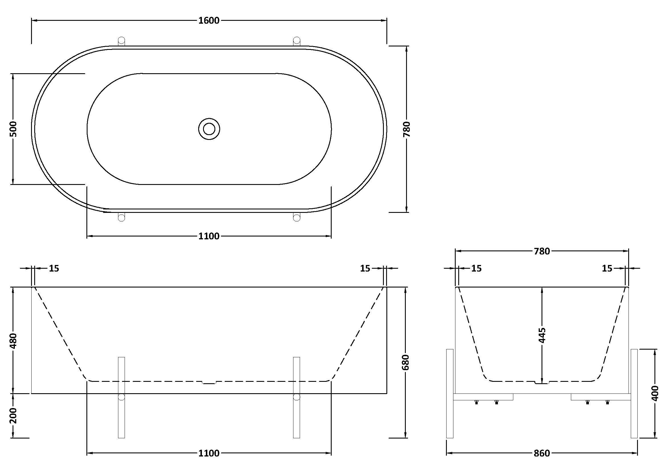 Nuie Choice Elevated 1600mm Freestanding Bath With Legs And Waste