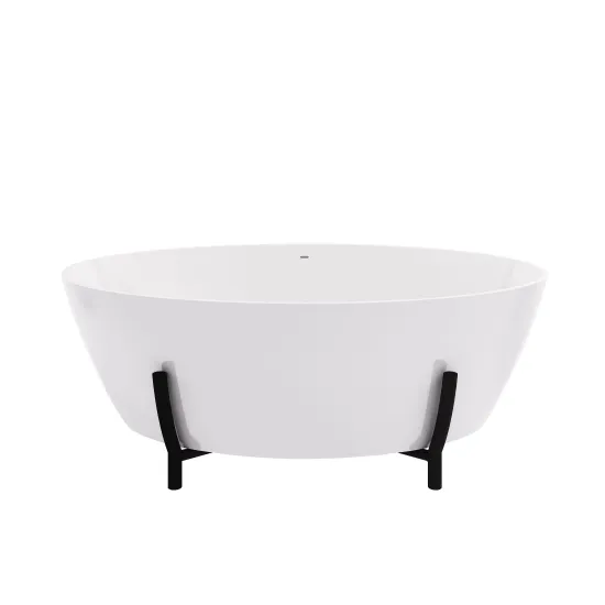 BC Designs Essex Round Freestanding Bath with Leg Stand 1510mm x 760mm - No Waste - Polished White