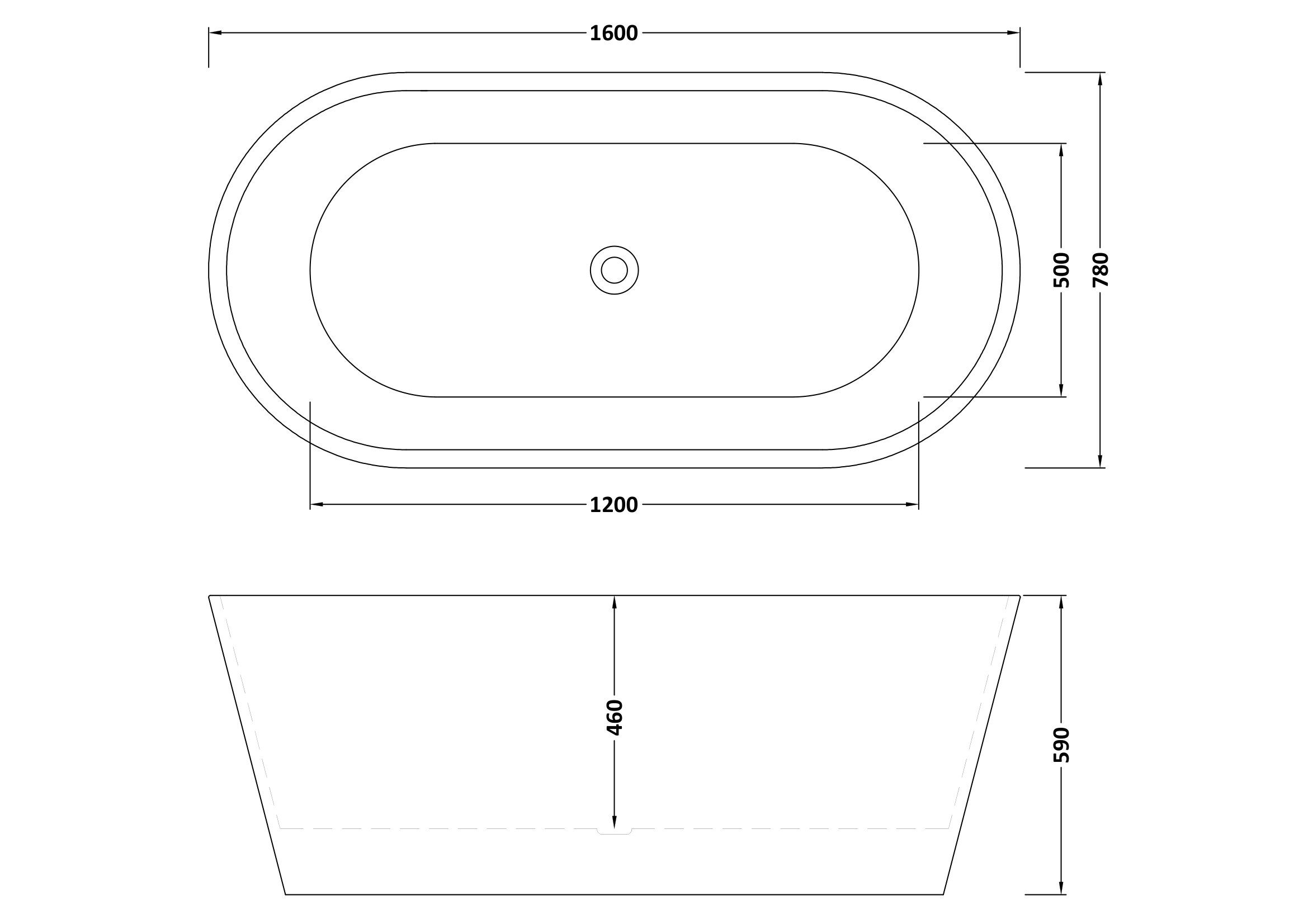 nuie choice Forever 1600 x 780 x 590 Oval Freestanding Bath - White