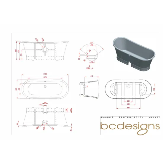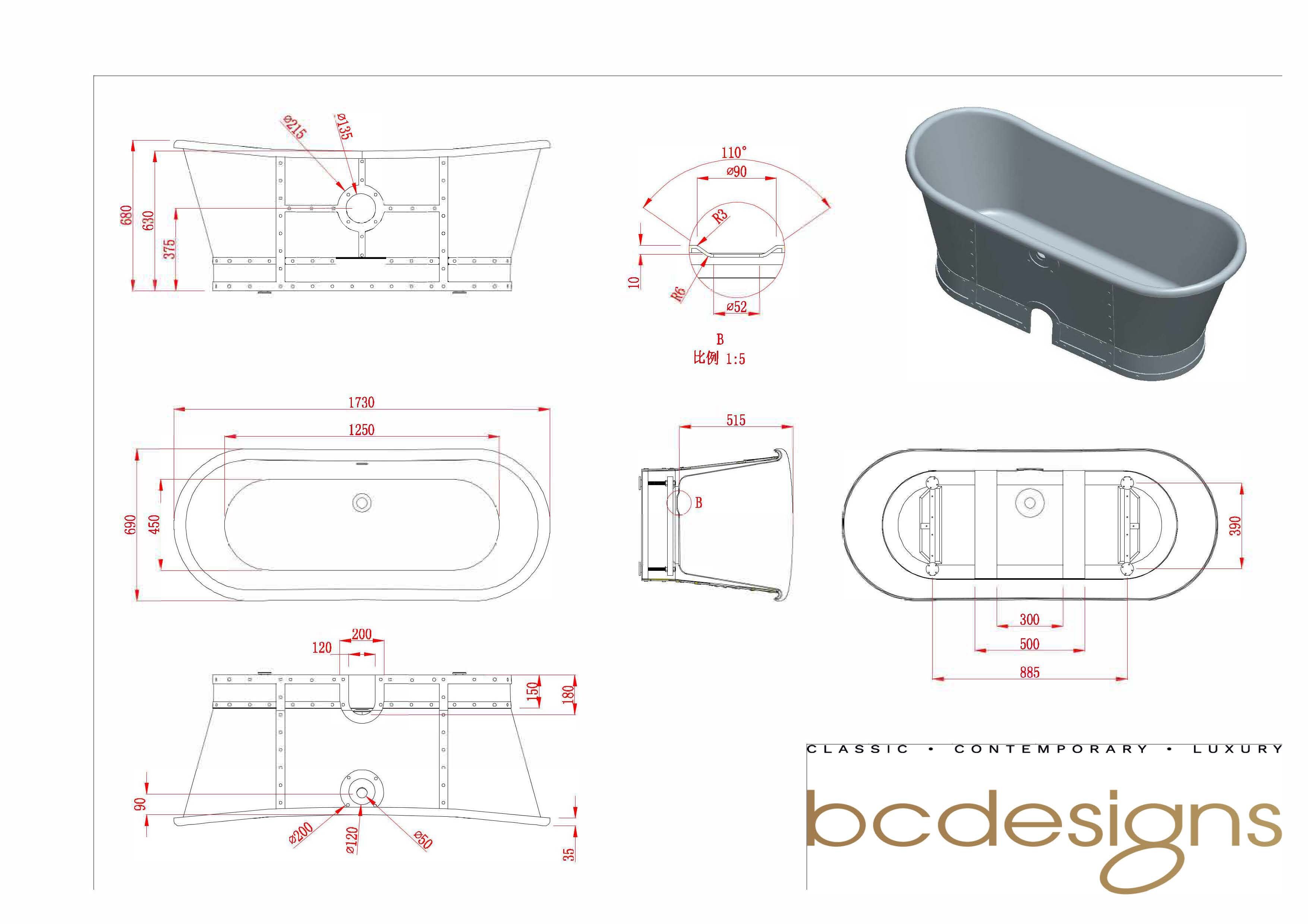 BC Designs Industrial Freestanding Industrial Boat Bath - Sanded - 1710mm - Sanded