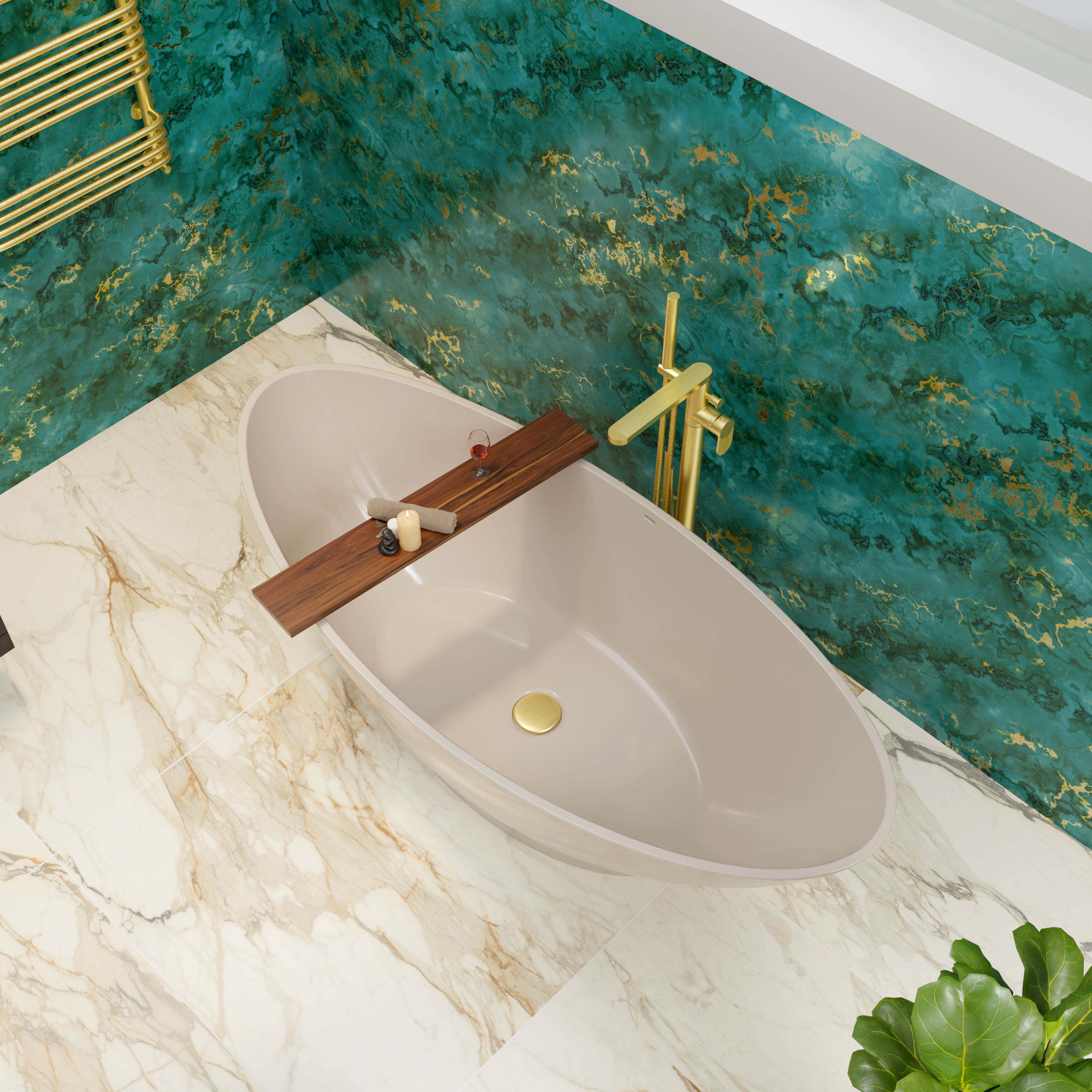 BC Designs Kurv Freestanding Curved Freestanding Bath 1890mm x 900mm - No Waste - Light Fawn