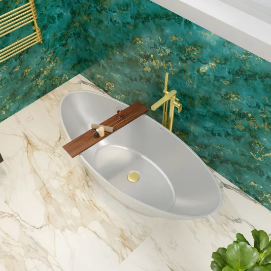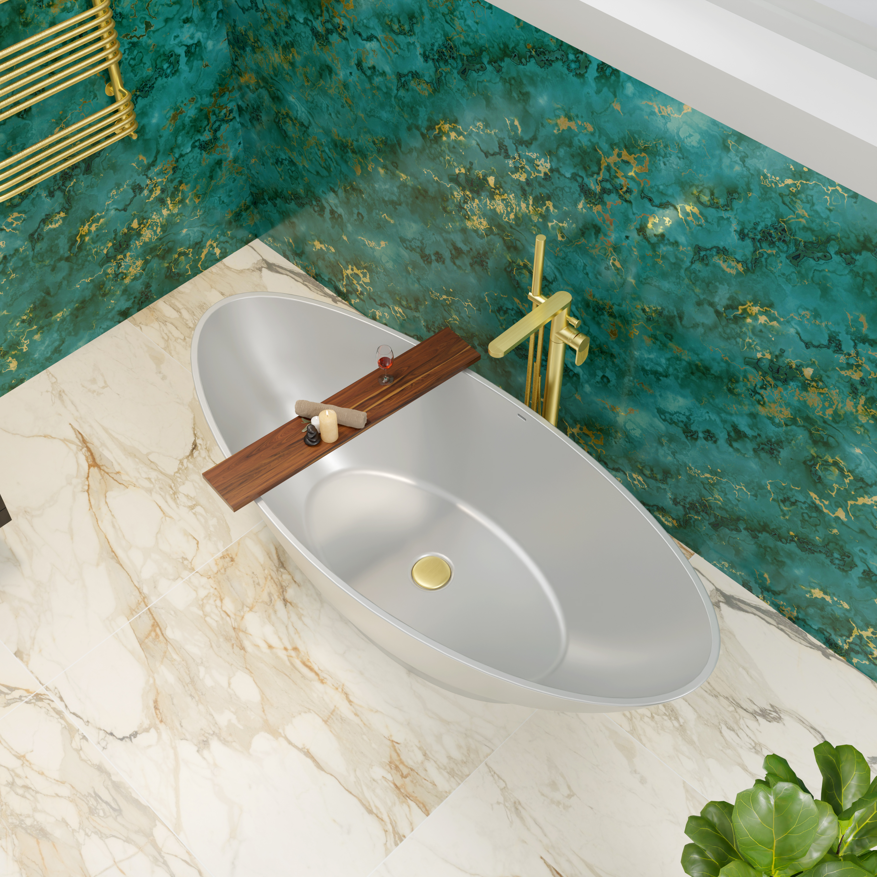 BC Designs Kurv Freestanding Curved Freestanding Bath 1890mm x 900mm - No Waste - Powder Grey