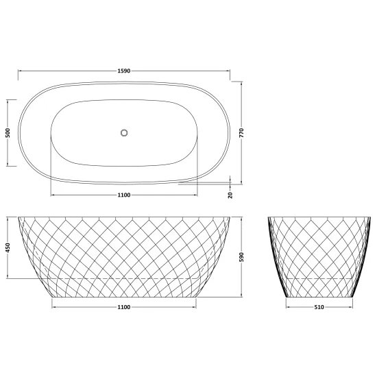 Minara 1590 x 740 x 590 Textured Oval Freestanding Bath