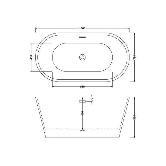 Nocturnal 1500 x 730 x 590 Oval Freestanding Bath