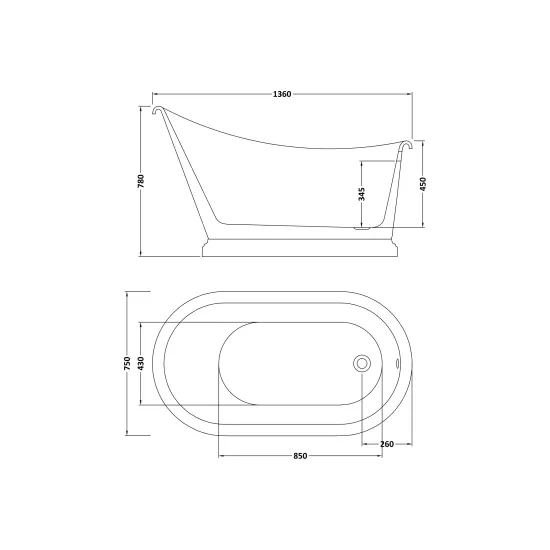 1700mm Slipper Bath - Copper Outer/Nickel Inner