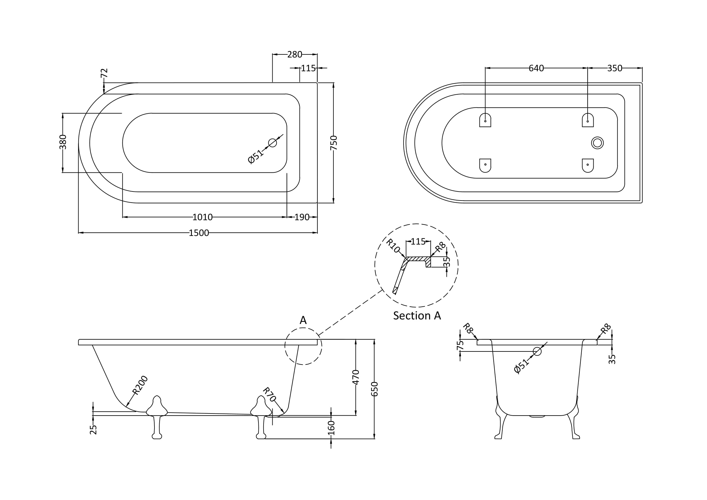 Hudson Reed 1500mm Freestanding Bath With Corbel Legs