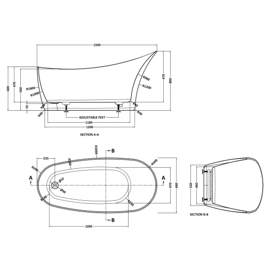 BC Designs Slipp 1590mm x 675mm Freestanding Slipper Bath Including Waste