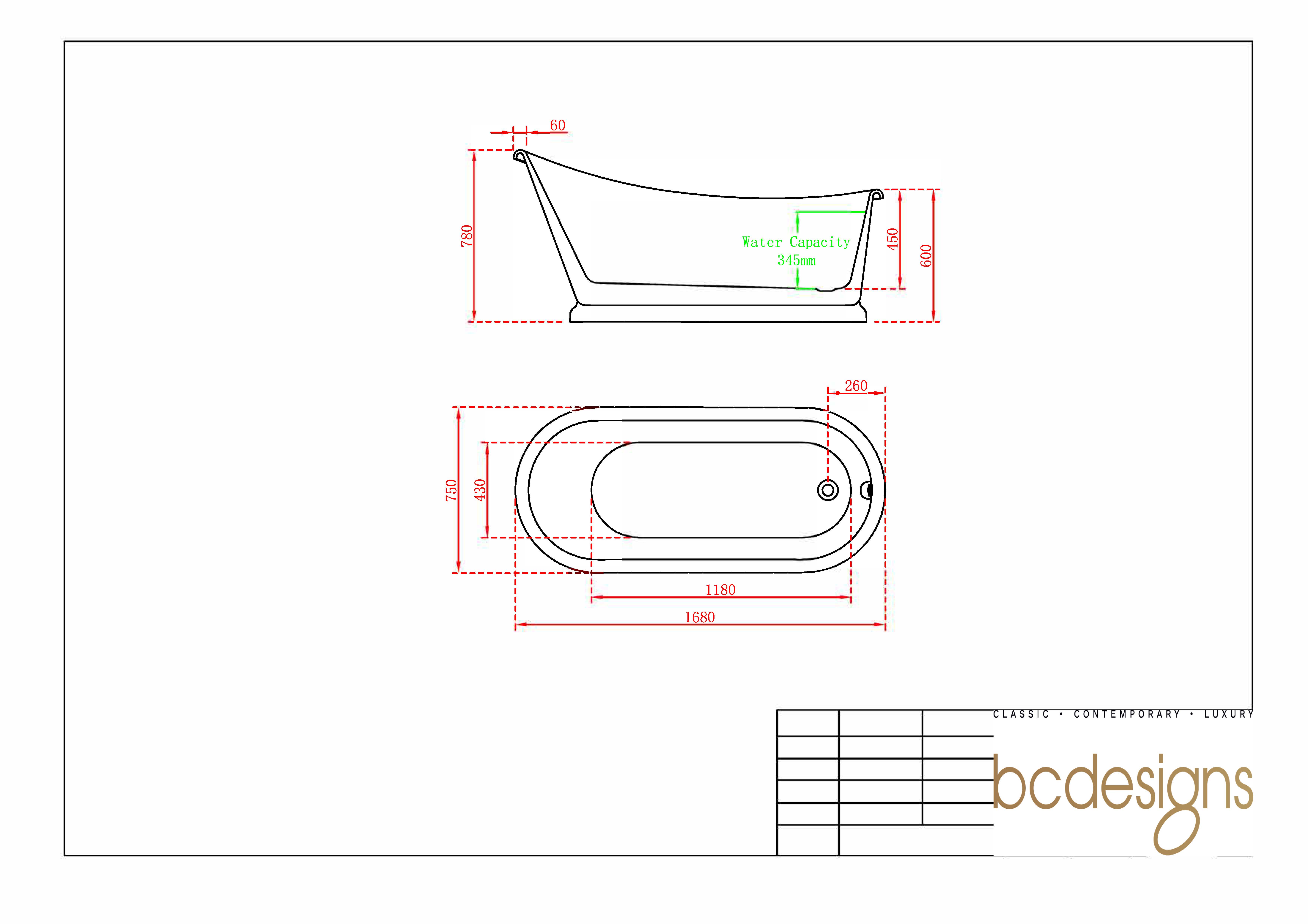 BC Designs Slipper Freestanding Slipper Bath - 1700mm - White