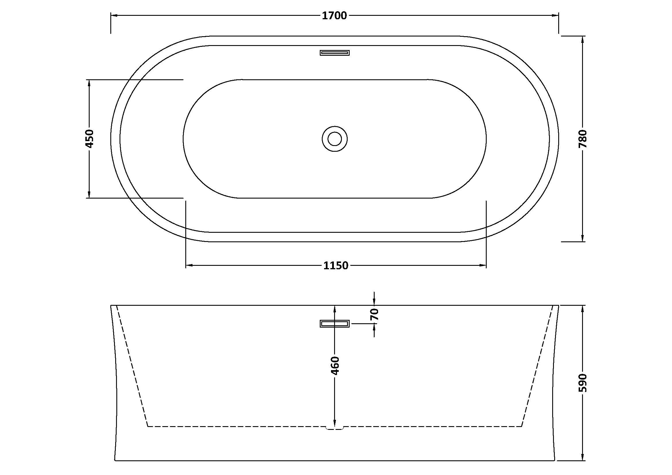 Nuie Choice Solstice 1700mm Freestanding Bath With Legs And Waste