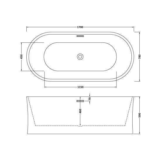 Solstice 1700 x 780 x 590 Oval Freestanding Bath