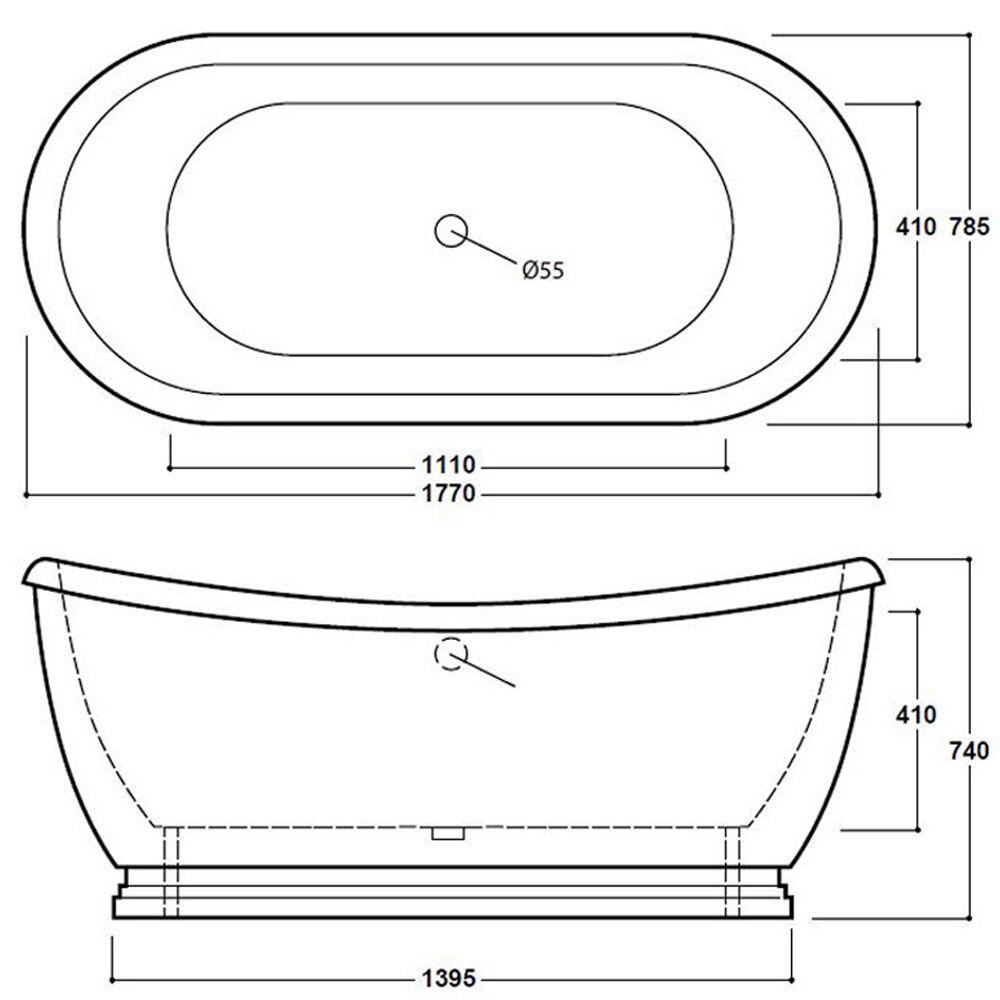 Synergy Boat 1770mm Traditional Freestanding Bath - Grey