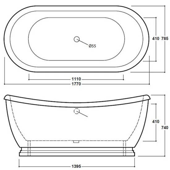 Synergy Boat 1770mm Traditional White Freestanding Bath