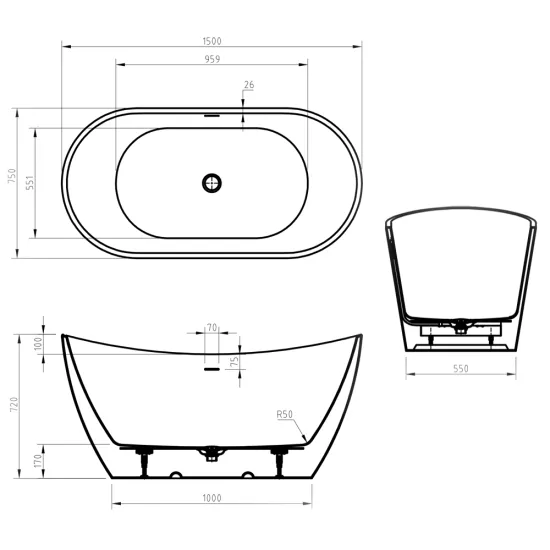 Synergy Bolsena 1500mm Modern Double Ended Bath