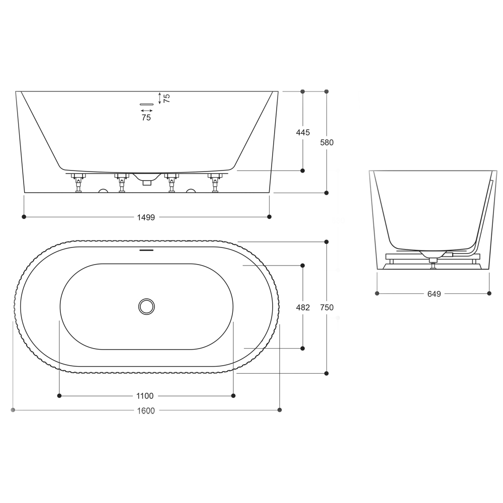Synergy Estriado 1600mm Fluted Freestanding Bath